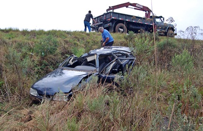Um acidente de trânsito na BR-153 feriu quatro pessoas na manhã deste sábado, 1º de junho. O condutor de um GM Monza placas LXM-0859 de Caçador seguia sentido Palmas-PR, quando perdeu o da direção e saiu da pista, capotando várias vezes ás margens da rodovia. Chovia na hora do acidente.