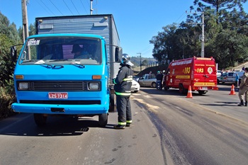 Polícia Militar e agentes da Dittesc efetuaram a sinalização do trânsito que fica extremamente intenso próximo ao meio dia.