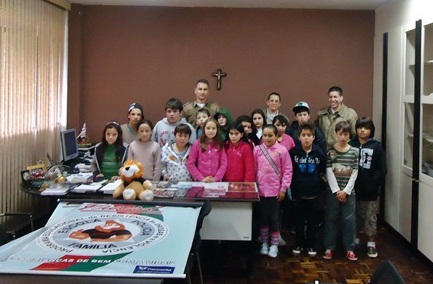 Os alunos puderam neste momento comunicar-se com as guarnições pelo rádio, desejando-lhes uma boa tarde de trabalho, as guarnições prontamente responderam desejando também uma boa tarde às crianças e que fossem bem-vindas ao batalhão.