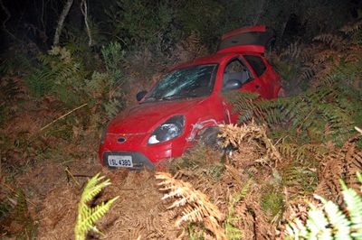 O carro ficou parcialmente destruído e parou a cerca de 15 metros da margem da rodovia