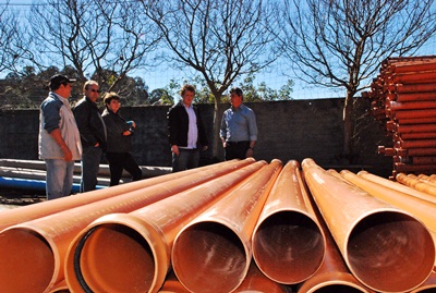 O prefeito Gilberto Comazzetto esteve no pátio da Fundema verificando as tubulações, juntamente com Pavelski e a secretária de Infraestrutura, Denise Chiarello. Ele comenta que o objetivo é deixar a rua preparada, sem que precise de reparos posteriores. “A segunda etapa de todo este novo programa é sem dúvida fazer as redes de tratamento, mas o custo é alto e precisamos analisar o orçamento de 2014 para poder dar início. No entanto o que estamos fazendo é deixar a rede de esgoto pronta nas ruas que estão no sistema caução, e isso sem dúvida otimiza os recursos públicos, pois elimina futuras obras em um asfalto novo que já está pronto”, declara o prefeito.