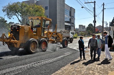 Foram reperfilados 3.500 metros quadrados, com emprego de 365 toneladas de asfalto produzidos na usina da Prefeitura de Caçador