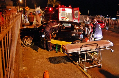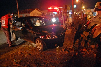 Um homem ficou ferido na noite desta quinta-feira, 15 de agosto, em um acidente de trânsito na Rua Brasília Em Caçador. Anderson Boroch Soares, 33 anos, conduzia um GM Corsa placas MIT-9268 de Caçador quando perdeu o controle da direção e bateu forte contra o muro de uma residência.