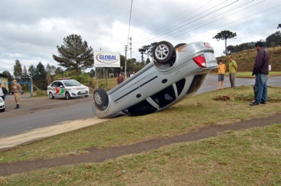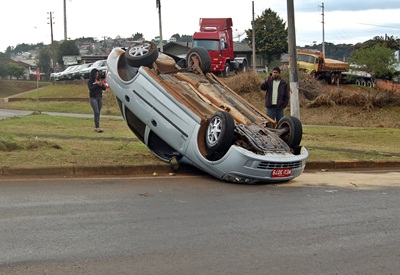 Um acidente de trânsito foi registrado no início da manhã deste sábado, feriado de 7 de setembro no Trevo da saída para Rio das Antas. Um Veículo GM Corsa placas de Caçador capotou depois que o motorista Donizete Moreira, 40 anos, perdeu o controle da direção e colidiu em um dos canteiros do trevo.