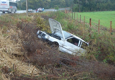 Uma saída de pista seguida de capotamento feriu levemente duas pessoas no início da tarde deste domingo, 8 de setembro, na SC-135 entre Caçador e Calmon. O acidente envolveu um Fiat Uno com placas de Gaspar-SC que havia saído de Matos Costa e seguia para seu município de origem.