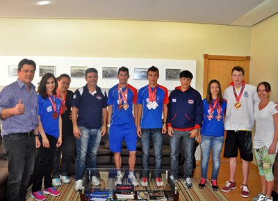 Encerrou neste final de semana em Criciúma a 26ª edição dos Joguinhos Abertos de Santa Catarina e nesta segunda-feira (7) o prefeito Beto Comazzetto recebeu os jovens medalhistas caçadorenses nas modalidades individuais de atletismo, natação e judô. Eles estiveram acompanhados de seus técnicos e do presidente da Fundação Municipal de Esportes de Caçador, João Coelho.