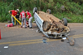Devido a redução brusca de velocidade efetuada pelo condutor do Prisma, o motorista do Gol não conseguiu manter o carro na via e depois de bater no Prisma e fazê-lo rodar, o Gol saiu da pista, bateu forte contra um barranco e acabou capotando várias vezes.