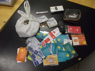 Após ter imobilizado o suposto autor do furto, os vigilantes acionaram a Polícia Militar eu esteve no local e deu voz de prisão ao agente, conduzindo-o até a Delegacia de Polícia Civil de Caçador. Com ele foram encontrados vários cartões de recarga de celular, cartões de telefone público, maços de cigarro, caixa de chocolate, certa quantia em dinheiro de papel e uma sacola com aproximadamente R$ 113,00 em moedas, todos os produtos supostamente retirados do interior do mercado.