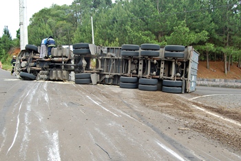 De acordo com informações, Heitor Vogelbacher, 42 anos, se conduzia de Blumenau para Caçador, com a carreta Volvo 1200 carregada com uma bobina industrial para a empresa Sul Brasil no Km 1,5, mas a pouco menos de 3 quilômetros de seu destino acabou perdendo o controle da direção e tombando na via.