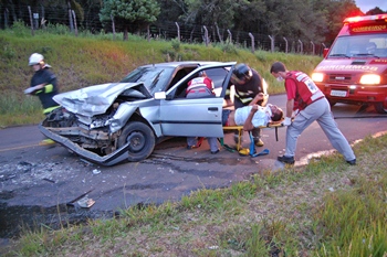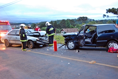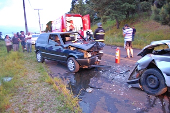 Com a violência da batida, ambos os motoristas ficaram feridos e só conseguiram sair dos veículos com o auxílio dos bombeiros voluntários de Caçador.