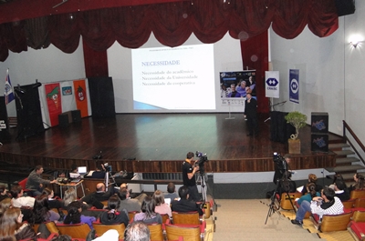 O reitor Adelcio Machado dos Santos ministrou uma mini-palestra com o tema: “A extensão universitária e a pesquisa na UNIARP”.