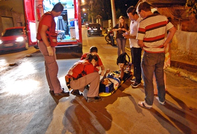 Um motociclista ficou ferido na noite deste domingo, 15 de dezembro após sofrer uma queda na Rua Moacir Sampaio, nas proximidades da Panificadora Santelmo. André Correia dos Santos, 26 anos conduzia uma Honda Bros, placas de Caçador quando derrapou num trilho de sujeira no centro da pista e acabou caindo.