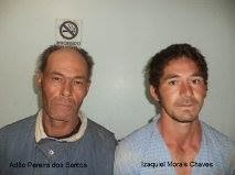 Depois de receber uma denúncia de que dois homens andavam com a cabeça de uma pessoa em um saco plástico e em alguns momentos chegando a jogá-la aos cachorros, a PM foi ao local, onde acabou encontrando Adão Pereira dos Santos e Izaquiel Morais Chaves, saindo de um reflorestamento de pinus com uma enxada na mão. Ao verem os policiais os indivíduos empreenderam fuga, mas acabaram cercados e presos pelas guarnições.