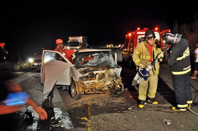 Quatro pessoas ficaram feridas em um grave acidente na noite desta sexta-feira, 7 de fevereiro, na rodovia SC 135, nas proximidades do Rancho Sorgatto entre Caçador e Calmon. Um VW Voyage placas de Porto União conduzido por Herly Fritsche, de 40 anos, uma VW Saveiro, de Araucária-PR, conduzida por Sebastião Benedito Matozzo, 50 anos, e Fiat Strada, placas de Matos Costa, conduzido por Natalino de Jesus Lapiano, 51 anos, foram os veículos envolvidos.