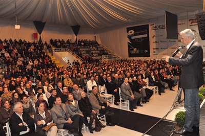 A natureza do homem foi ressaltada na palestra de quinta-feira (8), no Seminário Regional de Administração (SEAD). O despertar para a vitória e a utilização do corpo para o sucesso emocional, foi abordado pelo preparador físico e mental, Nuno Cobra, para cerca de 1.200 pessoas na arena da Universidade Alto Vale do Rio do Peixe (UNIARP). A palestra foi precedida de uma apresentação cultural realizada pelo Grupo Acalanto de Caçador.