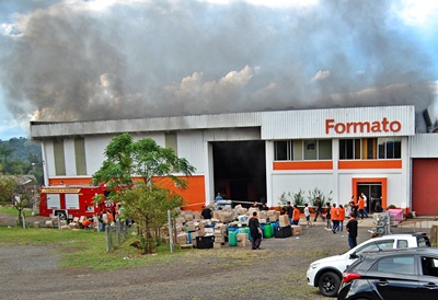 Polícia Militar e Dittesc também participaram dos trabalhos orientando o trânsito e afastando curiosos que atrapalhavam os bombeiros voluntários. É a segunda vez que a empresa registra incêndio. No final do ano passado um incidente com as mesmas características já havia sido registrado.
