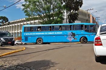 Chegou na manhã deste sábado, 15 de março á Caçador um novo comboio do Exército Brasileiro. A tropa compõe o 5º Batalhão de Engenharia e Combate Blindado de Porto União/SC, e vêm com o objetivo realizar treinamentos para uma possível necessidade atuação em partidas da Copa do Mundo a serem realizadas em Curitiba.