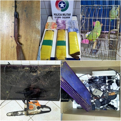De posse das informações repassadas pelo usuário, a PM organizou uma diligência e se deslocou até a residência de Alexandre, onde acabou encontrando mais de 2kg de maconha. Ainda na caso foi localizada uma espingarda de pressão, várias adagas, um casal de papagaios e diversos materiais de procedência duvidosa como um televisor, módulos e aparelhos de som automotivo, dentre outros.