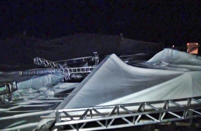 Os fortes ventos e chuva que ocorreram em Caçador no início da noite desta quarta-feira (19) acabaram por danificar parte da estrutura da arena de shows montada no Parque das Araucárias para a Festa dos 80 Anos do município a ser realizada a partir desta sexta-feira, 21 de março.