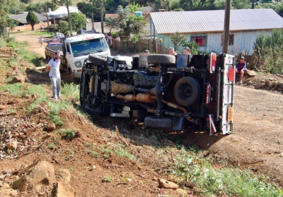 A Polícia Militar também compareceu para registrar um boletim de acidente de trânsito e promover o recolhimento do caminhão ao pátio municipal.