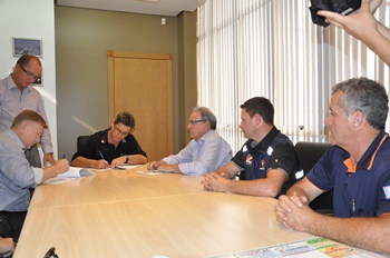 O ato ocorreu no gabinete do prefeito onde também foram garantidos recursos na ordem de R$ 104,9 mil pela Defesa Civil do Estado e mais R$ 18,5 mil da Prefeitura de Caçador para implantação do sistema antigranizo no município, totalizando um investimento de R$ 123,4 mil. Este convênio será assinado juntamente com os demais prefeitos da região durante a reunião do Conselho de Desenvolvimento Regional a partir das 18h desta sexta-feira no município de Calmon.