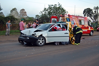 De acordo com informações, o caminhão conduzido por João Marcos Tenczna, 29 anos, carrega toras para a madeireira Temasa, mas havia se deslocado até a empresa Arpapi para efetuar a pesa da madeira. Quando retornava, ao sair do pátio para acessar a rodovia, acabou atingido pelo Gol.