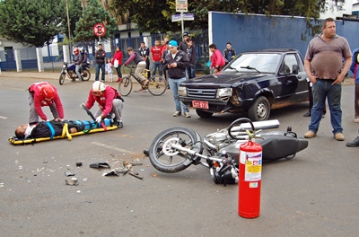 Com o choque o motociclista caiu e sofreu ferimentos, precisando ser socorrido e encaminhado ao Pronto Socorro do Hospital Maicé. O Corpo de Bombeiros Voluntários encaminhou viaturas ao local para prestar o atendimento.