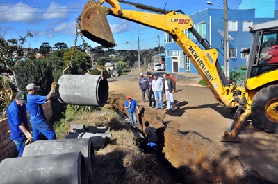 Fazendo parte do Plano de Trabalho entregue pela Defesa Civil de Caçador à Secretaria de Estado da Defesa Civil em função das enchentes no município, no final de semana foi dado início aos trabalhos de implantação de novas tubulações em bairros e comunidades do interior. O prefeito Beto Comazzetto foi até o bairro Martello, onde quatro ruas estavam recebendo benefícios. As obras são em parceria com a Secretaria Municipal de Infraestrutura.