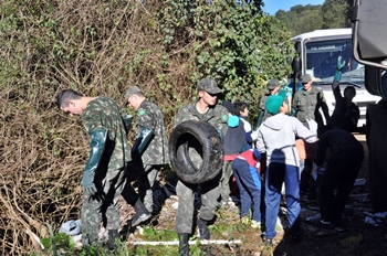 Nesta segunda-feira (2) a Prefeitura de Caçador através da Fundação Municipal do Meio Ambiente (Fundema) em parceria com a Empresa Tedesco, Tiro de Guerra 05-006 e os alunos 5º e 6º ano da Escola Domingos da Costa Franco, realizaram a limpeza de um local usado incorretamente para o descarte de lixo, no trajeto que segue para Linha Caixa D’Água. A ação teve como objetivo dar início as atividades da Semana do Meio Ambiente.