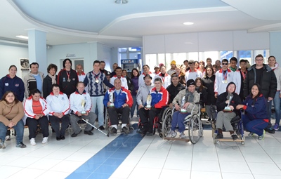 Nesta quarta-feira (4) os paratletas caçadorenses que disputaram o 10o Jogos Abertos Paradesportivos de Santa Catarina (PARAJASC) em Chapecó e conquistaram o quinto lugar geral da competição, foram recepcionados na Prefeitura de Caçador pelo prefeito Beto Comazzetto e o presidente da Fundação Municipal de Esportes, João Coelho, além dos técnicos, professores e guias que compõe a delegação do paradesporto municipal. O objetivo do encontro foi parabenizar os competidores pela força de vontade em defender Caçador no esporte.