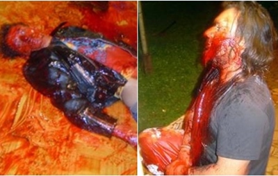 Nesta noite, os Bombeiros de Rio das Antas e a polícia foram acionados para se irem até a propriedade onde moram, sendo que ao chegarem à ocorrência encontraram uma cena de terror, dada a condição em que os dois se encontravam. Os indivíduos estavam completamente ensanguentados e com vários ferimentos provocados por golpes de faca, facão e até por um martelo.