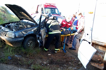 Com o forte impacto o motorista do Kadett sofreu ferimentos diversos pelo corpo e não conseguiu sair do interior do carro, sendo necessária a atuação de uma guarnição de resgate do Corpo de Bombeiros Voluntários.