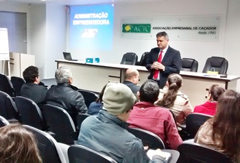Alunos do Curso Técnico em Administração e do curso de Formação Inicial e Continuada em Secretariado para a Indústria do Instituto Federal de Santa Catarina (IFSC), câmpus Caçador, assistiram, na quarta-feira (25), à palestra “Administração Empreendedora: como características empreendedoras influenciam as funções da administração”, ministrada pelo palestrante Roni Rodrigues de Brito, no auditório da Associação Empresarial de Caçador (ACIC).