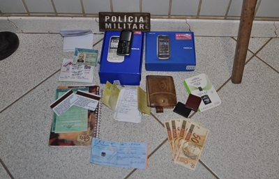 No interior do veículo utilizado pela dupla, a PM encontrou dois celulares da marca Nokia novos, ainda na caixa, um cassetete de madeira, um caderno com anotações de compras e serviços, diversas folhas de cheques do Banco do Brasil, das cidades de Caçador, Videira e São Bento do Sul e R$ 695,00 em dinheiro.
