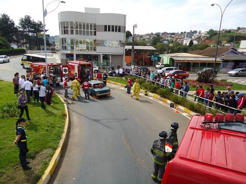 No simulado, realizado com o objetivo de promover a conscientização durante a Campanha de Prevenção de Acidentes de Trânsito, esteve um grupo de Bombeiros Voluntários de Caçador que fizeram demonstrações de diversos procedimentos usados no resgate a vítimas acidentadas.