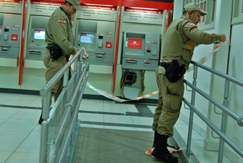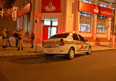 Mais uma vez um terminal de auto atendimento do Banco Santander em Caçador foi alvo dos arrombadores de caixas eletrônicos. Dentre outros fatores, a falta de alarme sonoro e ausência de portas de acesso com vista para rua, tem facilitado a atuação dos criminosos em que pouco mais de quatro meses arrombaram três vezes a referida agência.
