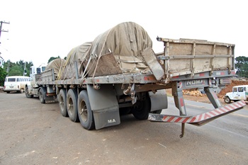 Chegando próximo a Hidráulicos Fenilli, ainda trafegando de forma irregular o motorista do caminhão forçou uma ultrapassagem, momento em que acabou colidindo na traseira de uma carreta com placas de Palmas-PR que seguia no mesmo sentido carregada de bobinas.