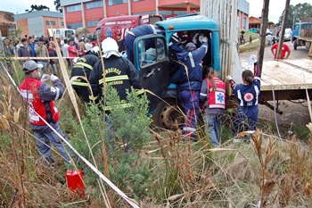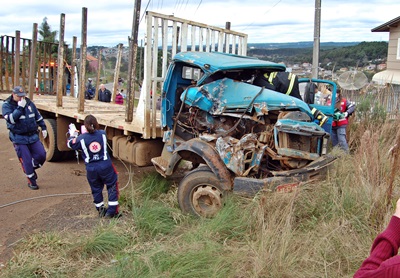 Depois de bater, o caminhão ficou desgovernado e parcialmente destruído parou a beira de um terreno baldio. Devido a intensidade da colisão, o motorista ficou preso ás ferragens e precisou ser desencarcerado pelos bombeiros voluntários. Uma ambulância do SAMU conduziu Ademir ao Pronto Socorro do Hospital Maicé para receber atendimentos médicos.