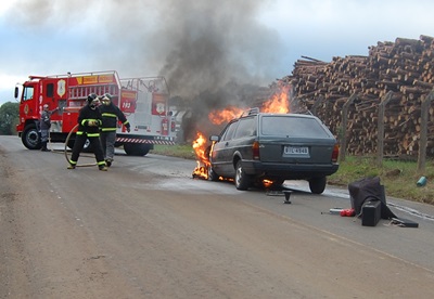 Ao perceber que não conseguiriam controlar o fogo, o condutor acionou o Corpo de Bombeiros Voluntários, que encaminhando uma unidade de combate ao local apagou as chamas.