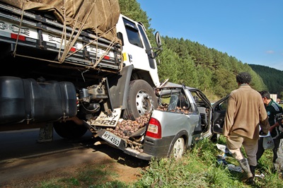No momento em que o primeiro caminhão reduziu a velocidade, uma Fiat Strada com placas de Caçador que seguia logo atrás também diminuiu, porém outro caminhão que não conseguir frear a tempo e atingiu a pick-up na traseira, lançando-a contra o caminhão da frente e depois esmagando-a com o rodado dianteiro.