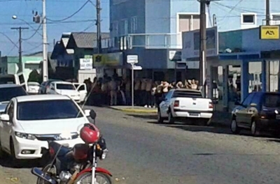 Segundo a Polícia Militar, o grupo de aproximadamente sete homens, encapuzados, todos armados com fuzis, pistolas e outras armas de grosso calibre invadiu uma agência do Banco do Brasil e fez diversos clientes e funcionários reféns. A maioria das pessoas foi obrigada a tirar parte das roupas e ficar com as mãos na cabeça sob a mira das armas.
