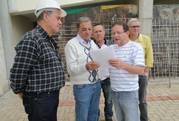 O secretário regional, acompanhado do gerente de educação, Renato Vogel, gerente de Infraestrutura, Newton Marçal Santos e o assessor de direção, Antonio Barcelos Claudino, estiveram realizando uma visita às obras da segunda fase da escola Dom Orlando Dotti