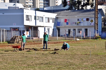 Os trabalhos foram acompanhados pelo prefeito Beto Comazzetto e o presidente da Fundação Municipal de Meio Ambiente (Fundema), Luiz Gustavo Pavelski. O novo sistema de drenagem já havia sido concluído antes do novo plantio da grama e agora será dado andamento a outras ações.
