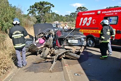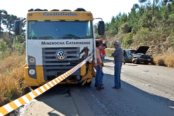 De acordo com informações, o caminhão seguia em sentido á Caçador quando o motorista do Tempra, que trafegava na direção contrária perdeu o controle e rodou na pista, vindo a colidir violentamente com a traseira na cabine do caminhão.