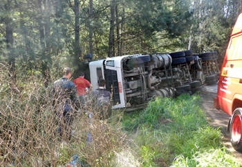 Uma carreta carregada de serragem tombou no início da tarde desta segunda-feira, 1º de setembro, na Rodovia SC-135, na curva conhecida como Garganta do Diabo, entre Caçador em Rio das Antas. Celso Melnik, 43 anos, era o condutor da carreta Volvo FH com placas de União da Vitória, que seguia em sentido a Fraiburgo.
