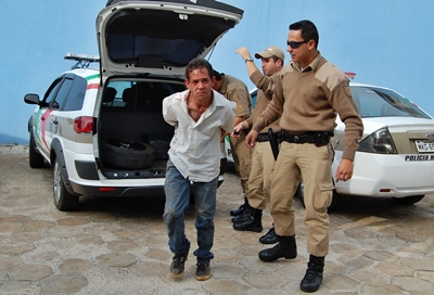 Quando a PM chegou ao local os moradores já haviam localizado o suspeito, sendo que o mesmo tentou fugir e acabou sendo agredido a coices e pedradas.