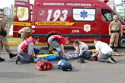 Apesar de não ter sido tão forte a batida, os dois ocupantes acabaram caindo da moto e sofrendo ferimentos pelo corpo. Ambos foram encaminhados pelos bombeiros voluntários ao Pronto Socorro do Hospital Maicé para receberem atendimento médico. O motorista do pálio saiu ileso.