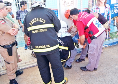 Na tarde deste domingo, 26 de outubro, uma ocorrência inusitada foi atendida pelos bombeiros voluntários. Uma criança de 2,7 anos teve a cabeça presa num buraco de um monumento no portão de acesso ao Centro Educacional Multidisciplinar do Bairro Martello.