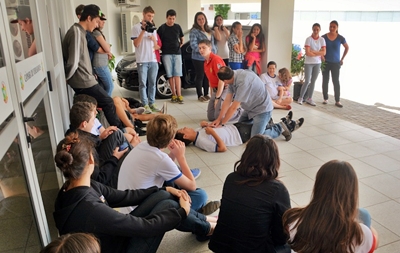 “Procuramos trabalhar a explanação técnica e a prática, com ênfase de situações do dia-a-dia. Desta forma queremos semear a ideia de ajudar o próximo, e sejam cidadãos melhores e mais seguros quando adultos”, informa Giancarlo de Oliveira. Além dos integrantes do programa, alunos da Escola Irmão Leo também participaram de capacitação.