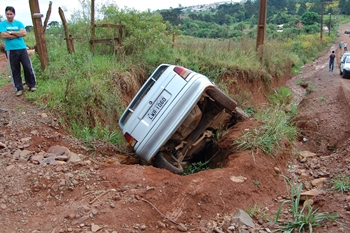 De acordo com Sebastião Ribeiro de Mello, 66 anos, que dirigia o carro, ele se distraiu enquanto acendia um cigarro. Não tava conseguindo acender o cigarro e acabei me descuidando da direção. Quando vi já não dava mais tempo e o carro caiu no buraco”, contou.